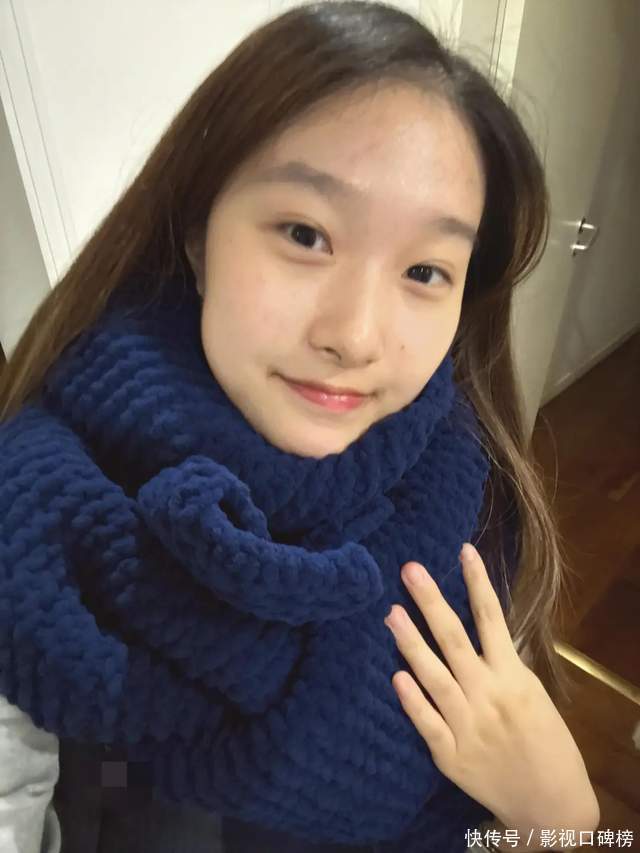 文君竹晒出围着外婆织的蓝色围巾,对着镜头笑得很开心!样子很清秀。她应该是素颜出镜,没有浓妆艳抹,皮肤白皙紧致,落落大方。