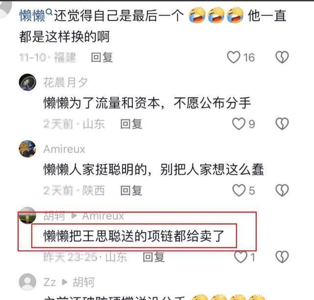就在九月份,网友就发现了端倪,因为王思聪和懒懒的社交平台的互动戛然而止。 而懒懒在某二手平台悄悄上架了很多奢侈品项链,这都是王思聪曾送给她的定情信物。